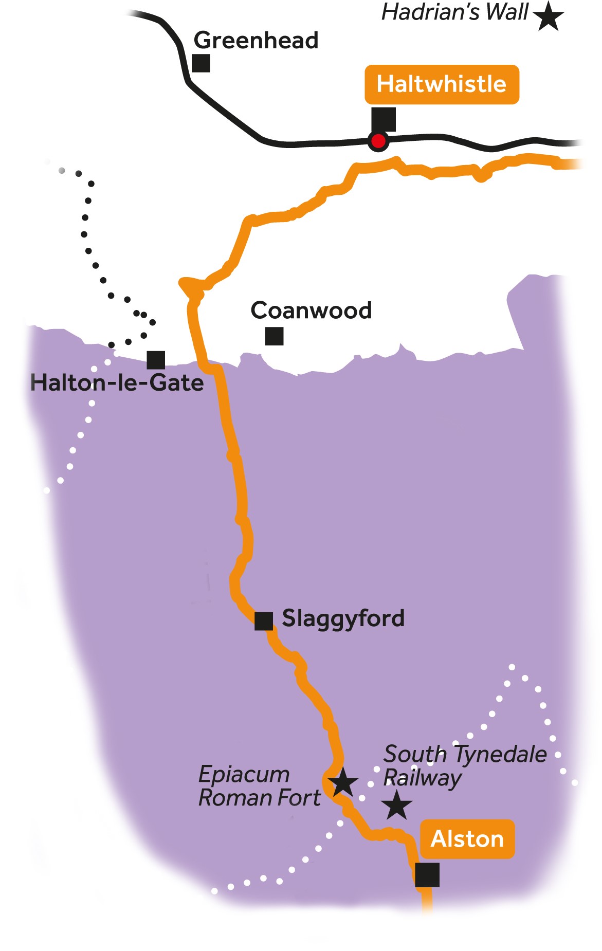 Today you pass the impressive Epiacum Roman Fort and walk some of the route of the Maiden Way Roman Road, possibly spot a stream engine on the South Tynedale Railway and wander on riverside paths.